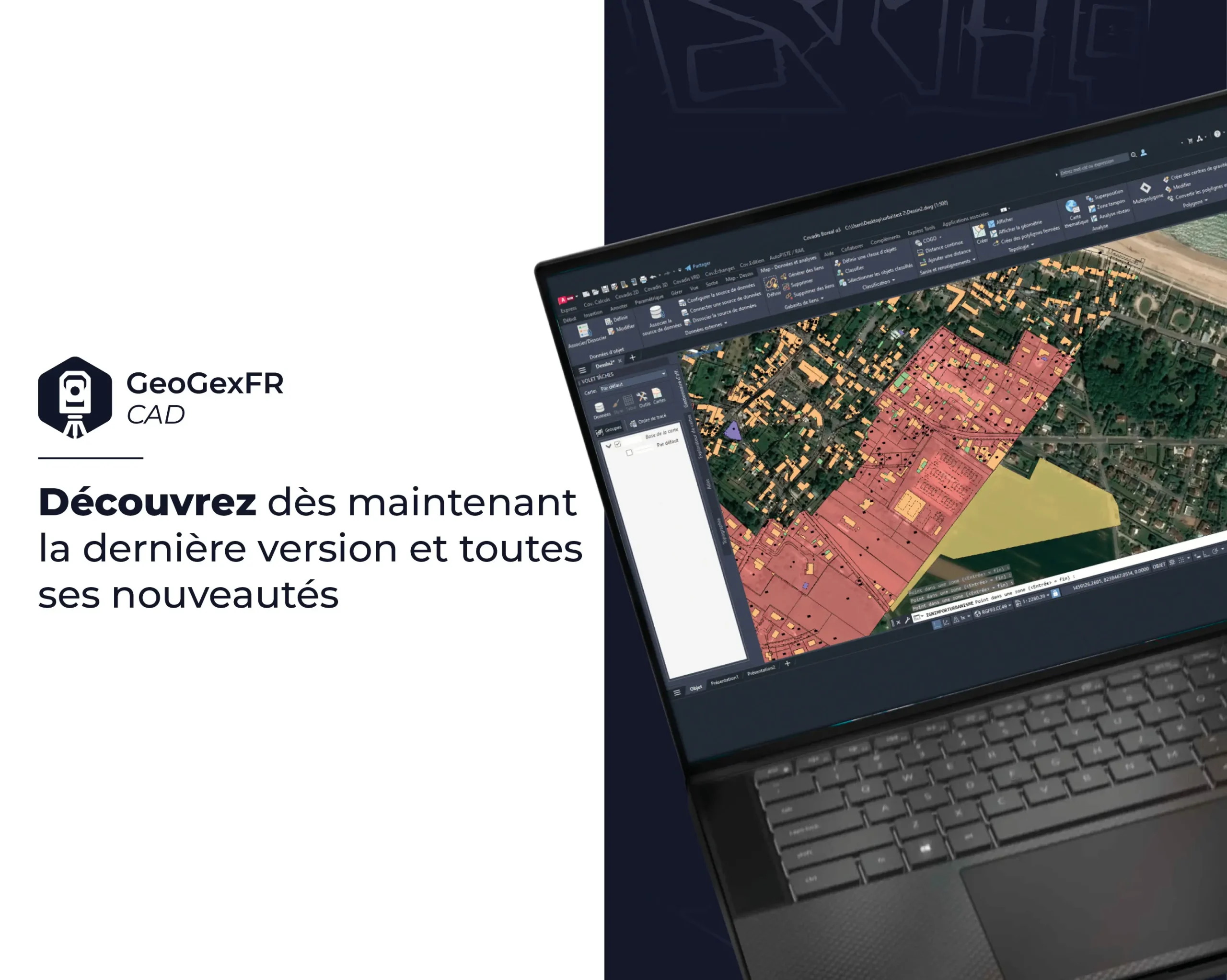 Avec la nouvelle commande de calage en coordonnées brutes, automatisez le recalage des parcelles selon les tolérances de la planche cadastrale, adaptez les bâtiments et exportez le DXF modificatif, dessinez les raccordements aux parcelles adjacentes et générez les listings de points et la fiche visa finale.
