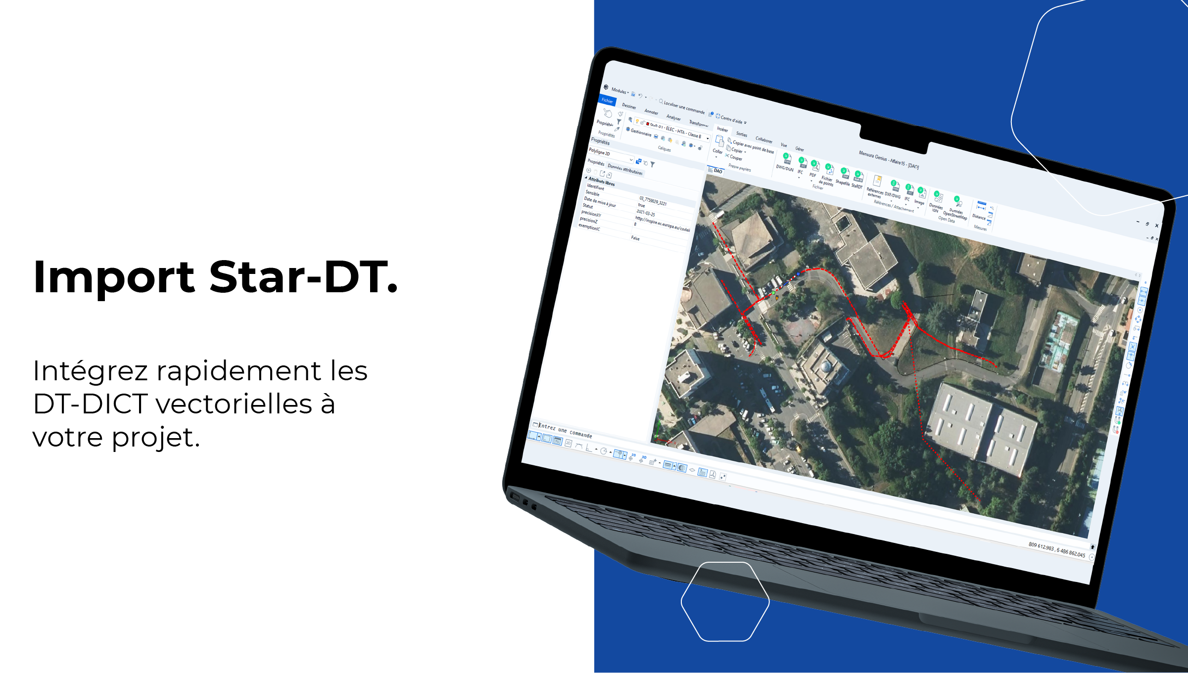 • Fonctionnalité : cette fonction d’import permet de représenter automatiquement la position précise des réseaux souterrains existants, fournis par les exploitants dans leurs réponses à vos DT et DICT