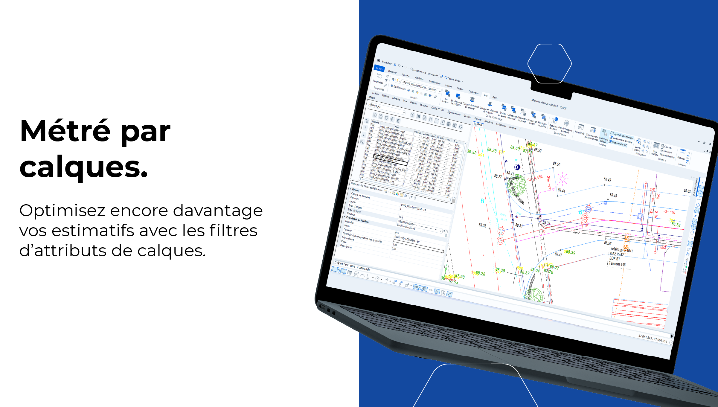 • Bénéfice : optimisez encore davantage vos estimatifs avec les filtres d’attributs de calques