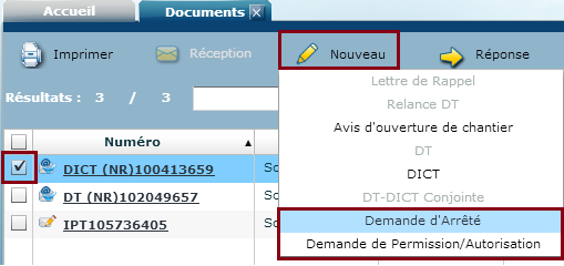 Sur l’application DICT.fr, vous avez la possibilité d’envoyer une Demande d’arrêté ou une Demande de Permission/Autorisation de voirie directement depuis votre DICT.